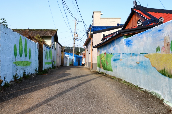 안녕하세요? 기어가는 아이가 자기라고 콕 알려준다. 그 사이 많이 자랐는데 기저귀는 그대로였다. 아이들이 참 해맑다. 모르는 척 지나가려는 우리에게 말을 건넨다. 집도 예쁘고 벽화도 참 예쁘구나? 뭐라도 대꾸를 해줘야 할 것 같아서 주섬주섬 대답을 한다. 집 담장의 벽화는 아이들을 그린 거라며 아이의 아빠도 다가와 인사를 한다. 벽화와 세 아이들... 아버지는 그렇게 우리에게 아이들 사진을 찍도록 허락해 주셨다. 어느 유명한 벽화마을보다 더 곱고 은은했어. 당연히 얼마 전에 다녀온 안동 신세동 벽화마을과 비교할 수밖에 없었다. 바다와 벽화마을의 융합. 통영 동피랑보다 순수했던 이곳의 분위기에 누구라도 반하게 될 거다. 우리는 그렇게 이야기했다. 마을과 벽화와 바다가 완벽하게 어우러진 곳. 그리고 마을 사람들이 이곳을 찾아오는 사람들을 언제라도 반갑게 맞을 수 있도록 마음의 준비가 되어 있는 곳. 진짜 행복마을! 가을 바다 실컷 구경하기, 겨울바다도 끝내줄 것 같은 두호마을. 낚시를 즐기는 사람들이 많았고, 가을 햇살에 노랗게 익어가는 어촌의 정겨운 풍경은 마음을 훔친다. 인형 같았던 아기 고양이. 어항 안에 장난감을 넣어 꾸며놓은 듯 잔잔하고 포근한 풍경이 무척이나 좋았다. 파란 바다와 파란 하늘, 말 그대로 가을의 매력을 고스란히 겨울바다를 보기 위해 다시 와보고 싶은 곳이 여기였다. 착한 가을, 착한 바다, 착한 하늘. 그리고 착한 사람들을 만나고 왔다.