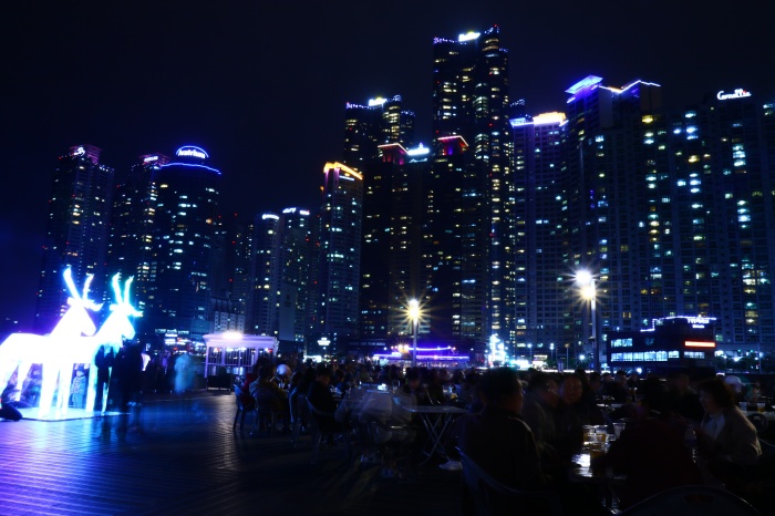 사람이 많은 장소를 좋아하는 편이 아니라 부산 여행을 올 때마다 빼놓고 안 가던 곳이었는데 다른 이웃분도 추천해주시길래 다녀왔다. 가보니까 왜 그렇게 사람들이 좋아하는지 알만하겠더라. 야경은 물론 젊음이 가득한 활기찬 분위기에 푹 빠져들어, 외국에 나와있는 것 같은 기분이었다. 뭐 상해 야경에 비할수는 없지만 우리나라에도 이런 곳이 있다는 것에 사실 놀랐다. 홋카이도 삿포로 비어축제 같은 분위기였고, 맥주 한 잔 들어갈 수 없을만큼 배가 너무 부른 상태여서 커피 한 잔만 하고 바로 옆 해운대해수욕장 밤길을 산책했다.