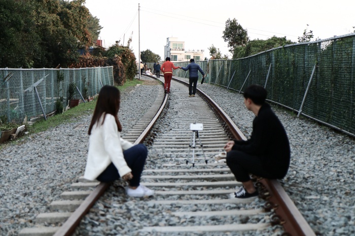 군산 경암동철길마을처럼 아기자기한 멋도 없고, 사진을 다양하게 찍을만한 공간이 조성되어 있는 곳은 아니었지만 잔잔한 분위기가 좋았다. 친구는 부산1박2일 여행코스 중 첫날에 이곳이 가장 좋았다고 했으니까. 일몰도 끝내주게 멋있었고, 어떻게 보면 공포스러운 분위기, 하지만 어쨌거나 난 실루엣 사진을 하나 건졌다. 친구는 똥 싸는 것 같다고도 했고 귀신같다고 하면서 별로라고 했는데, 이거 니네가 찍었거든?