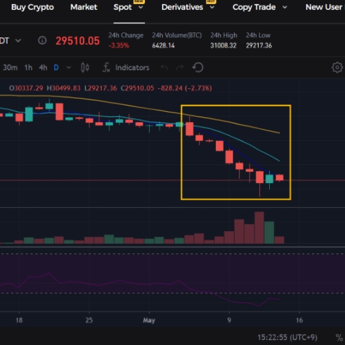 안녕하세요. 암호화폐 시장이 최악을 향해 달려가고 있습니다. 시장 외내적인 부분이 모두 악재로 둘러싸여 있으며, 언제 해소가 될지도 모르는 상황입니다. 먼저 악재들을 좀 다뤄보겠습니다. 시장 외적인 부분은 아무래도 인플레이션이겠습니다. 모든 원인은 인플레이션부터 시작을 하게 됩니다. 물론 인플레이션은 항상 진행되어 왔지만, 러시아와 우크라이나의 전쟁 발발과 코로나19로 인한 침체된 경제를 부양시키기 위하여 미국 중앙은행의 인플레이션을 해결하기 위해 가지고 있었던 카드를 모두 소진한 것이 맞물려서 근래에 보기 드문 세계 경제에 타격을 입히는 물가 상승을 초래한 것으로 말할 수 있습니다. 또한 지난 3월부터 시작된 금리 인상으로 인하여 4월의 보조 지표들이 좋아질 것이라는 기대를 하였지만, 소비자 물가지수(CPI), 생산자 물가지수(PPI) 모두 예상치보다 상회하는 수치가 발표되면서, 연준이 기대하는 만큼의 효과를 보지 못하는 것 같기에 현재 발표한 6~8월의 금리 인상과 양적 긴축이 시작되는 계획 이외에도 추가적인 조치를 취할까 두려운 상황입니다.