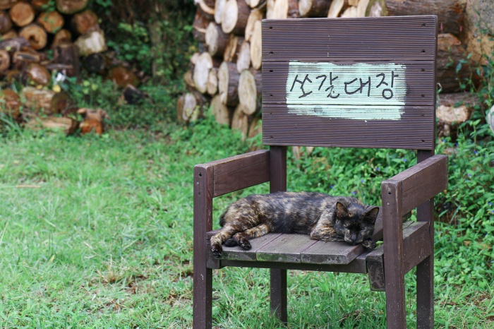 아홉굿마을 제주 여행 중 굉장히 독특했던 장소. 2007년 ~ 2009년에 걸쳐 1000여 개의 의자 조형물로 꾸며졌고, 여기에 농촌마을 체험까지 할 수 있어서 제주 지역의 숨은 명소로 알려졌다. 의자가 많아서 낙천리 의자마을 또는 낙천리 의자공원으로 불리고 있는 들어가면 온통 의자다. 인물 사진 찍기 좋아하는 사람이라면 제주 여행지로 만족할 수 있는 곳이다. 우리가 생각하지도 못 했던 독특한 모형의 의자가 많아서 가족과 함께든, 친구와 함께든 다양한 설정샷이 가능했던 고양이는 조형물이 아니다. '쏘갈대장'으로 불리는 요 녀석은 이곳을 찾은 사람들의 시선을 빼앗는다. 이것도 의자인데, 정말 보지 못 했던 여러 종류의 의자가 많았다. 의자 위에 풀이 무성한 것을 보니 약간은 관리가 미흡해 보였으나 이 점이 크게 문제 되지는 않는다. 오히려 농촌마을의 풍경을 더 살려주는 기분도 든다.