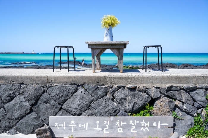 제주도에 살아서 얼마나 좋으실까. 비자림도 무료입장이니 가고 싶을 때 언제든 갈 수 있고. 세화해변 산책 잠깐하고 테이블 앞에서 사진 찍고 카페 공작소에서 음료 마시고 이곳에서 약 1시간 30분 정도의 시간을 보냈다. 사진에 미쳐서 여기저기 찍고 다니니 친구가 나와서 동행해준다. 늘 옆에 있어줘서 고마워. 음료의 맛은 대단히 매력적이지 않아서 내가 다음에 찾는다면 커피를 마셔볼 생각이다. 하지만 풍경도 좋고 여자 여행객들의 마음을 흔드는 장소다.