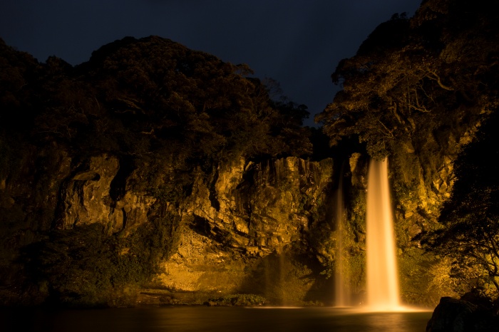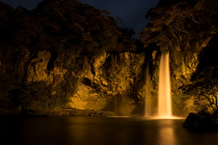천지연 폭포 야경입니다. 3년 전에 친구랑 낮에 다녀갔기에 밤에 천지연 폭포를 보게 되어 감사한 시간이었다. 비가 왔고, 우산이 없어서 사진을 많이 찍지 못했다는 것이 아쉽지만 천지연 폭포는 밤에 보는 것이 묘한 분위기를 느낄 수 있다.