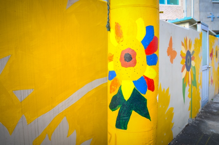 제주시 두문동 근처에 있다하여 동네 이름을 따서 이 일대는 <두멩이 골목>이 되었다. 낡고 오래된 골목에 예술가들의 혼을 담아 알록달록 색을 입히게 되었는데 2008년 공공 미술 공모 사업에 당선되면서 더욱더 탄력을 받게 되었다. 골목 안에 있던 폐가와 쓰레기 등을 처리하고 주민들을 위한 운동기구를 들여놓았다. 또 골목길 안에 정원을 조성하기 위해 꽃담과 꽃 벽화를 그려나가기 시작했다. 두문동은 제주도의 구도심 중에서 또 외곽에 있는 곳이라 제주도 여행자들에게는 관심 밖의 장소였지만 달라진 골목길의 분위기로 이곳은 사랑스러워졌다. 낡고 빛바란 건물 외벽에는 꽃과 나비, 개구쟁이 아이들의 모습, 과거의 모습을 담은 흑백의 벽화, 제주의 멋진 풍경과 해녀의 모습까지 거리 곳곳에 녹아있다.