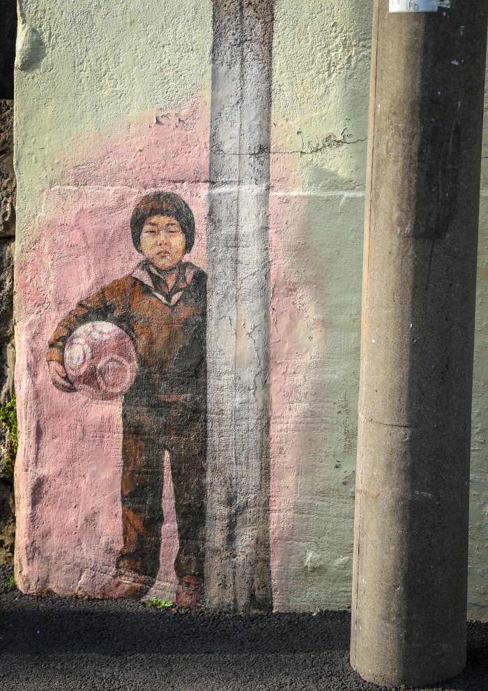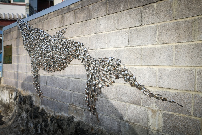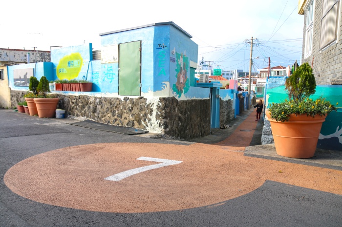 <열려진 바닷길을 걷는 듯, 그렇게 골목길로 빨려들어간다.> <화려하게 멋을 내지 않은 돌담, 그리고 그들의 익숙한 물건들이 벽화와 어우러진다.> 설문대 할망? 뭍과 워낙 멀리 떨어져 있는 섬이라 고려시대까지만 해도 이곳이 우리나라로 관리되었다는 기록을 찾기 힘들었다고 한다. 제주도가 우리 역사에 편입되면서 '설문대할망설화'가 알려지기 시작했는데 아이들의 초등학교 교과서 어디에선가 이 이야기를 처음 접했었다. 설문대할망은 키가 매우 큰 할머니인데 치마에 흙을 실어 날라서 제주도를 만들었다고 전해진다. 높은 한라산은 흙을 7번이나 날라서 만들었고, 옮기면서 흘러내린 흙들이 기생화산인 <오름>이다. 우리나라 건국신화인 <단군신화>처럼 이 이야기도 하나의 설화에 그치지만 제주도가 어떻게 형성되었는지 참 기막히게 잘 만들어진 재미있는 이야기라는 생각이 든다.